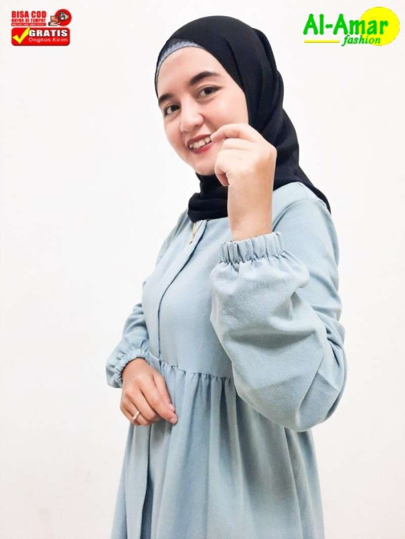 Kancing dibagian pergelangan tangan tentu menambah variasi gamis, sehingga tidak terlihat monoton.